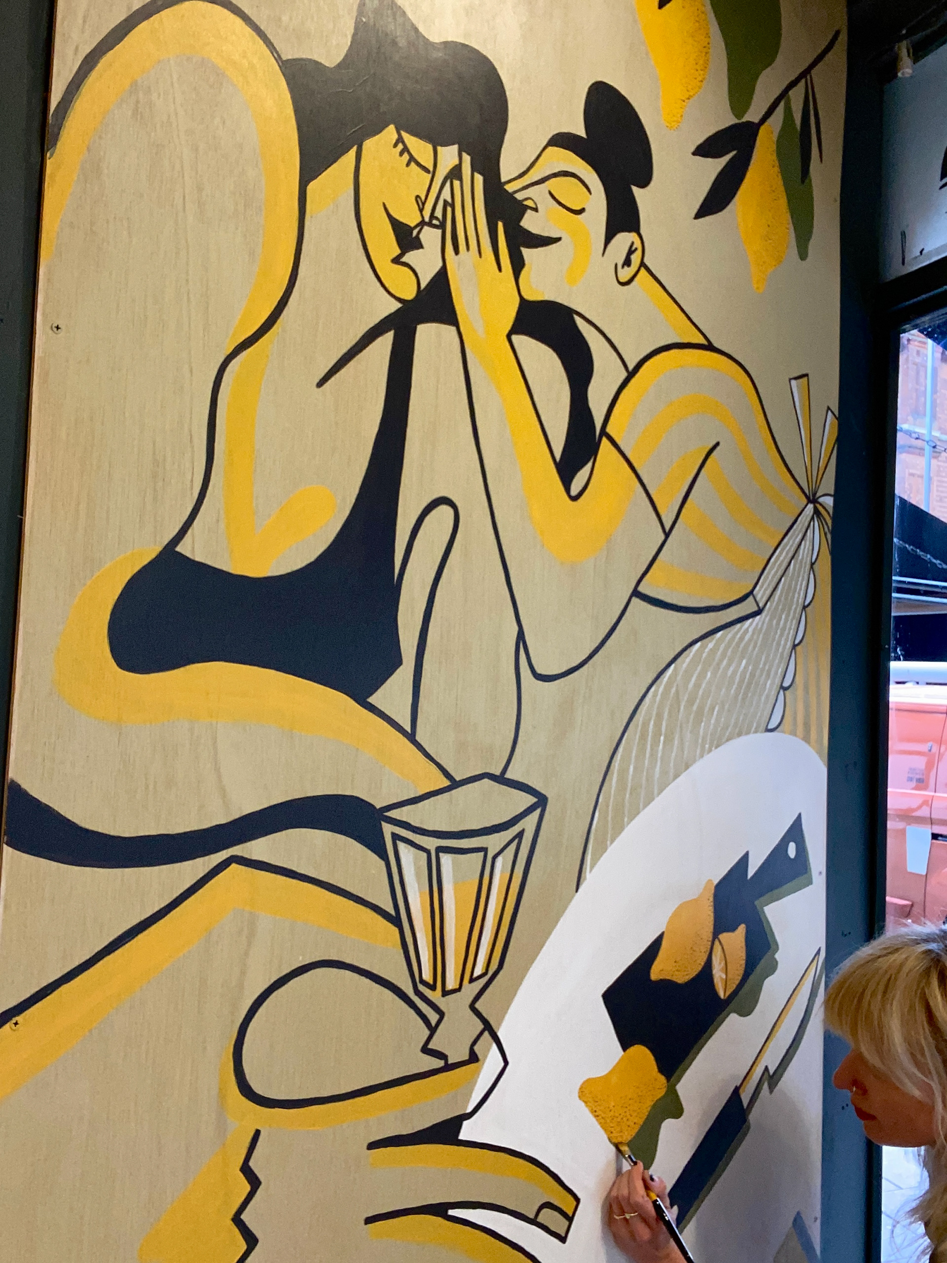 I was honoured to create the new summer window mural for After Noah's 35th birthday. I wanted to create something which commemorates the playful, loving, community centred atmosphere of the shop.