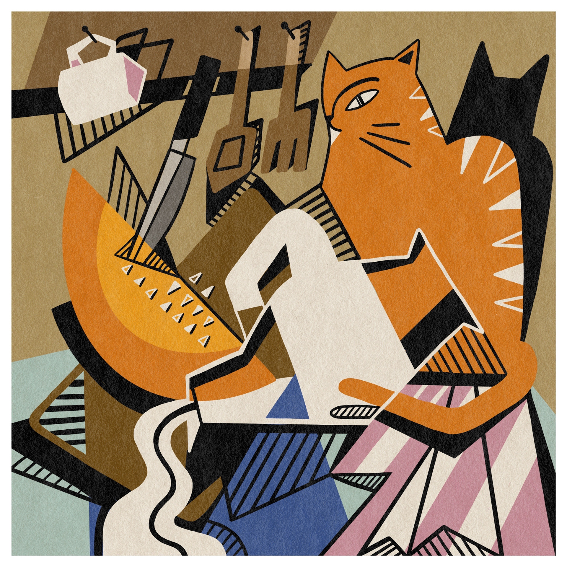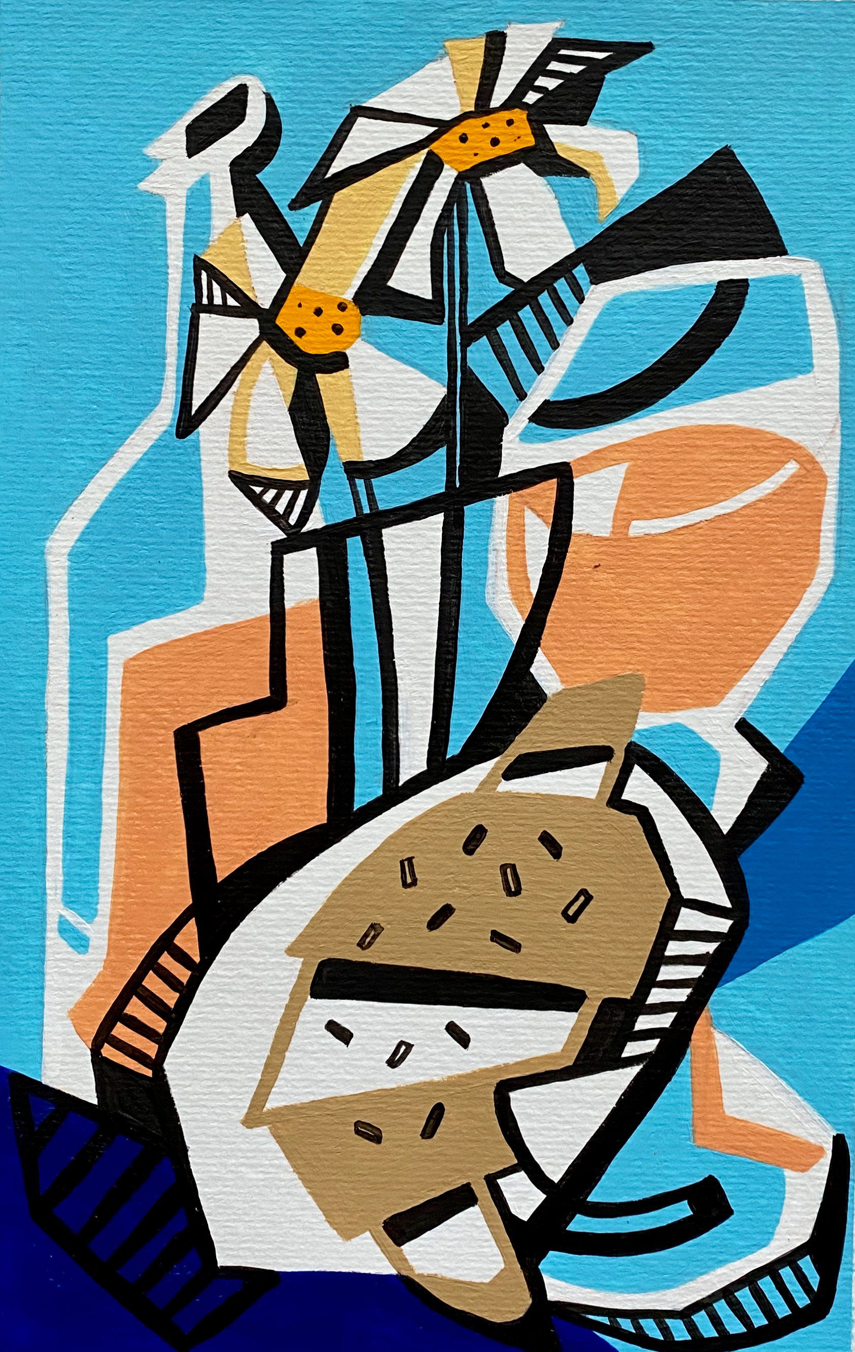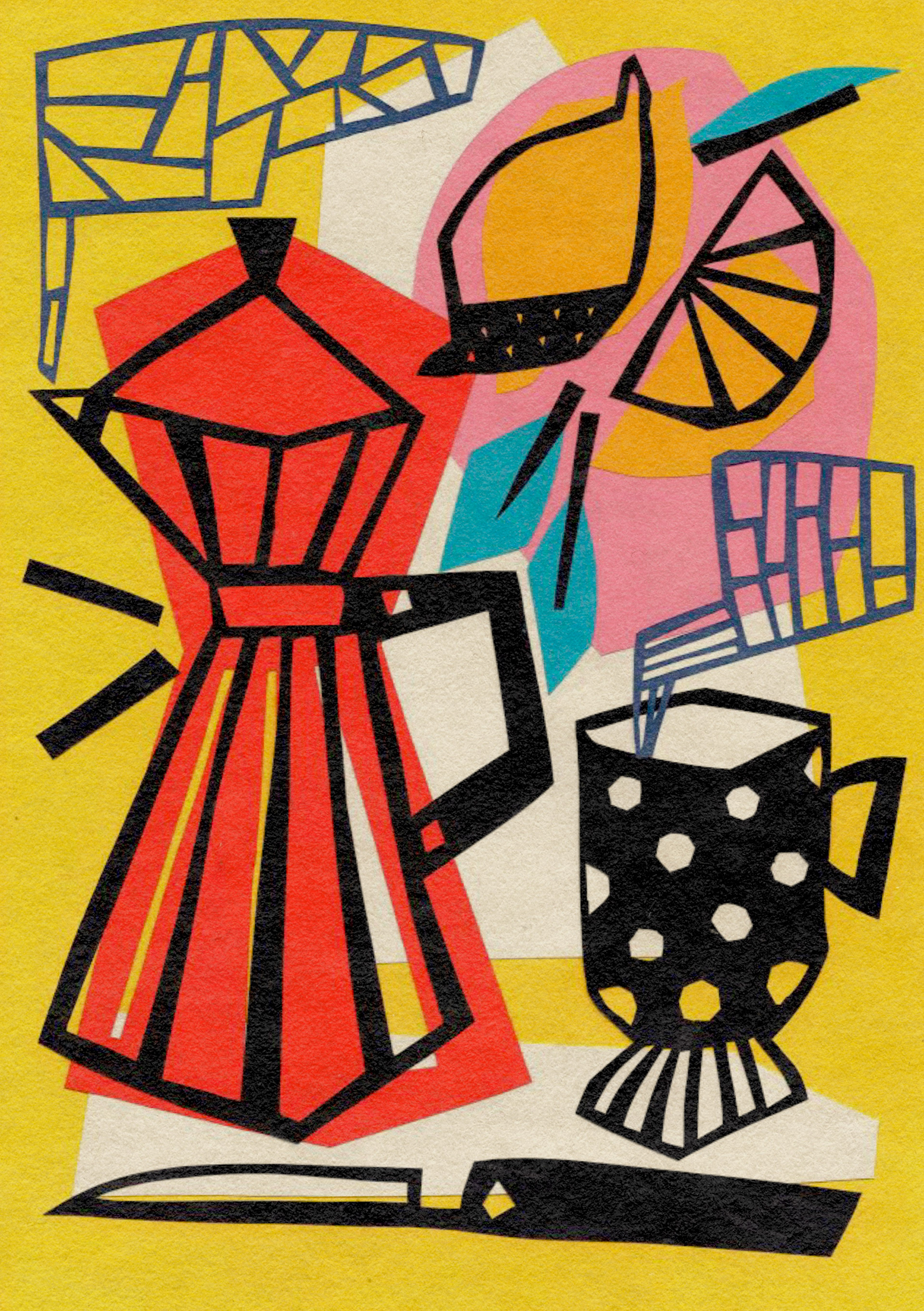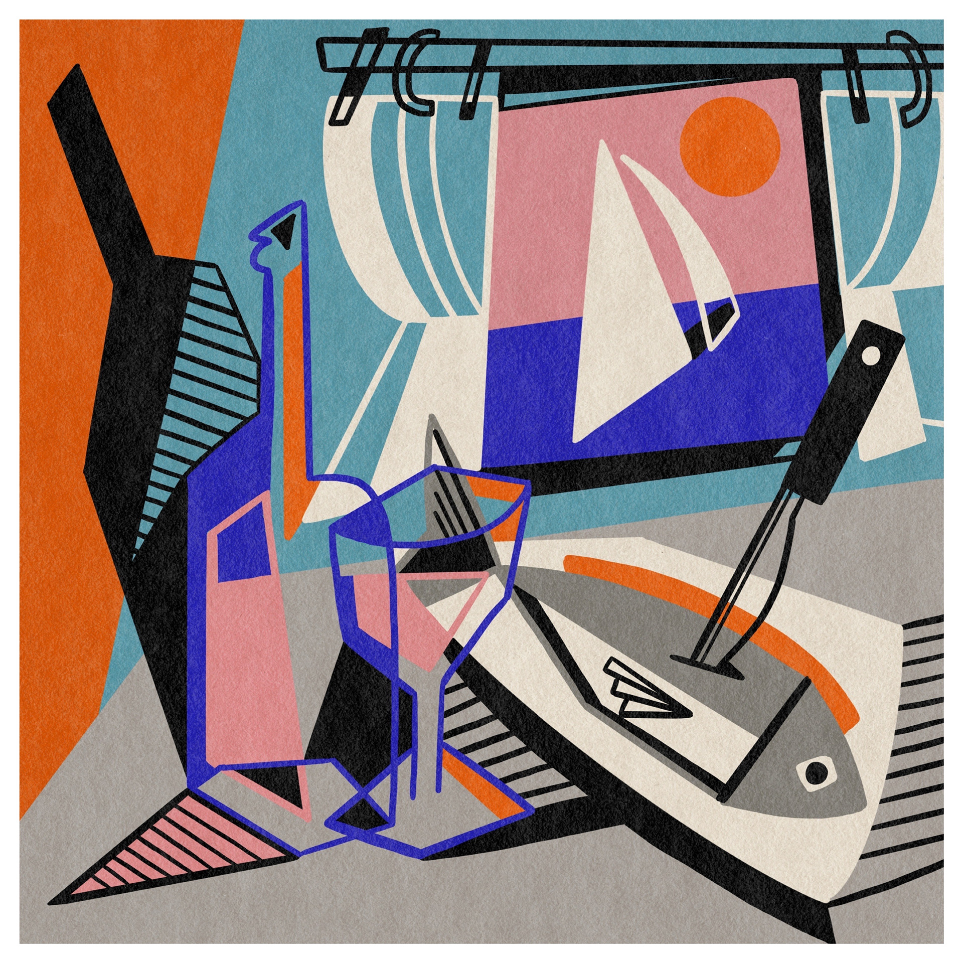 When illustrating food and still life, I take a slightly abstract approach, using bold colours, contrasting thick black lines, and playful light and shadow. With familiar natural forms and everyday objects, I like to leave space for the viewer to connect the pieces—evoking personal memories and interpretations.