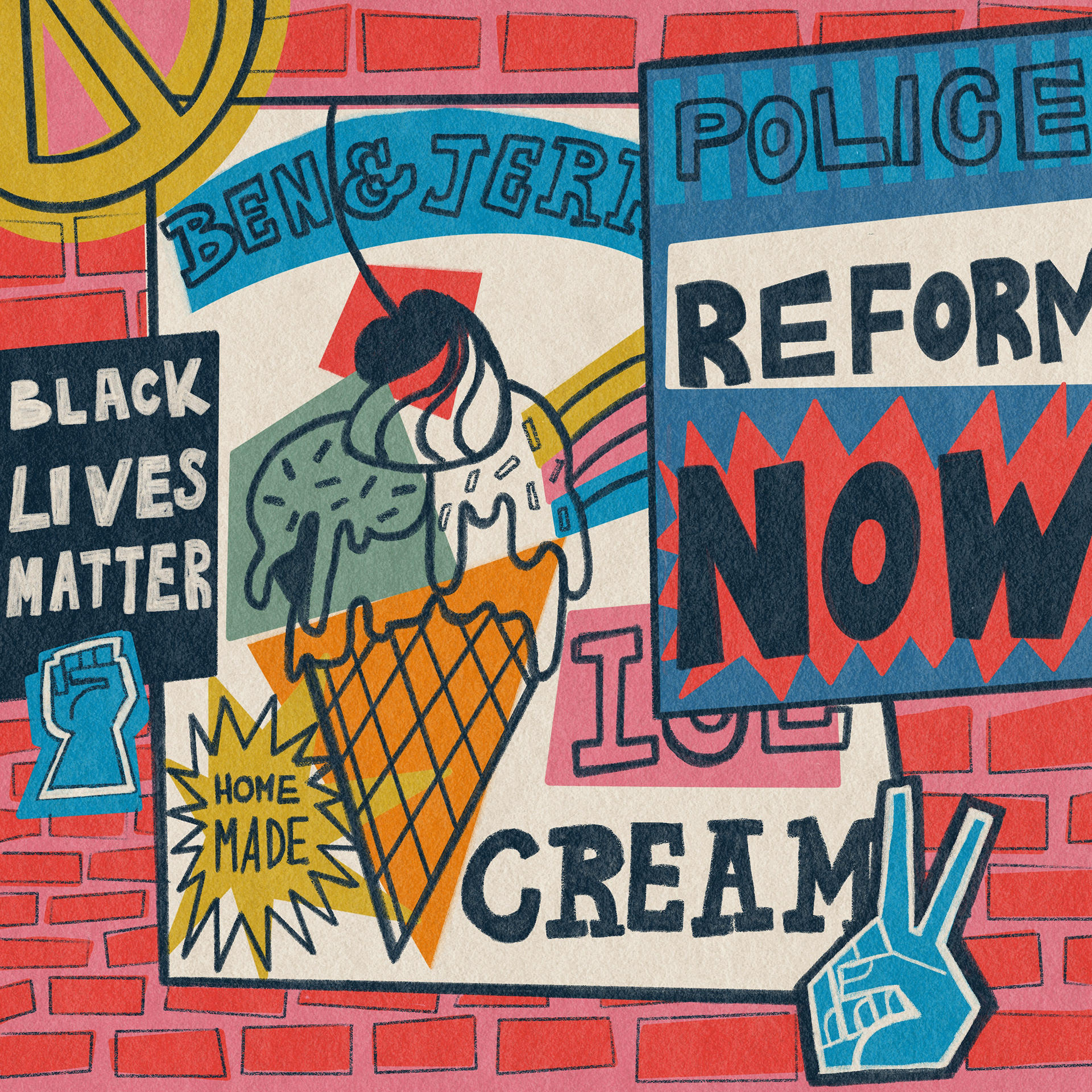 I was commissioned by Vox Creative to create artworks for each transcript episode of their podcast with Ben & Jerry’s, called ‘Into The Mix’. Featuring renowned guests like Patti Smith, John Legend, or Big Freedia, the podcast explored powerful themes of social justice, equality, and climate change.