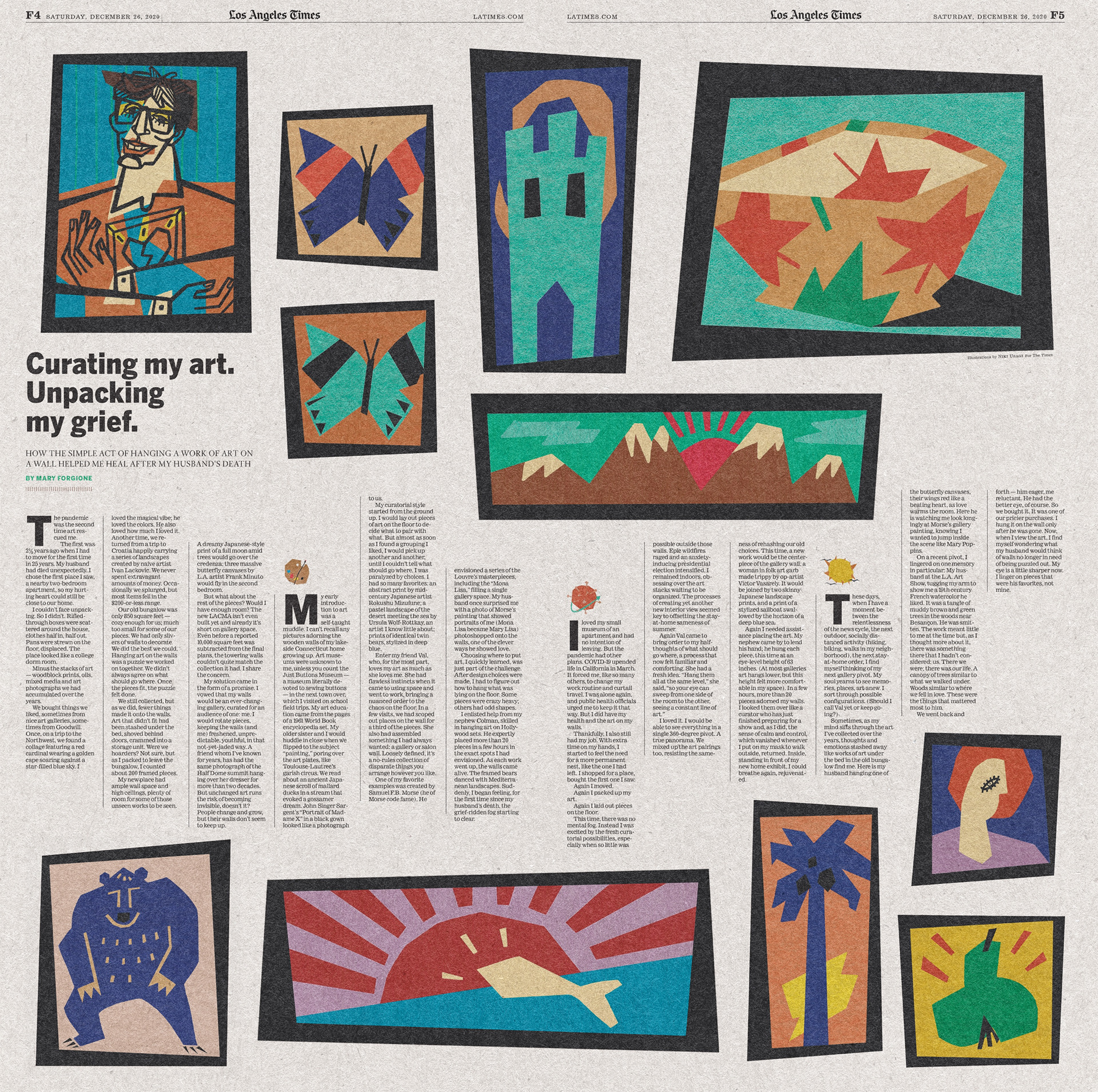 One of my most meaningful commissions was illustrating Mary Forgione’s deeply moving article in the Los Angeles Times about how surrounding herself with artwork helped her navigate the loss of her beloved husband. Published on Boxing Day 2020, at the height of the pandemic, her words offered a soothing presence to many grappling with grief.