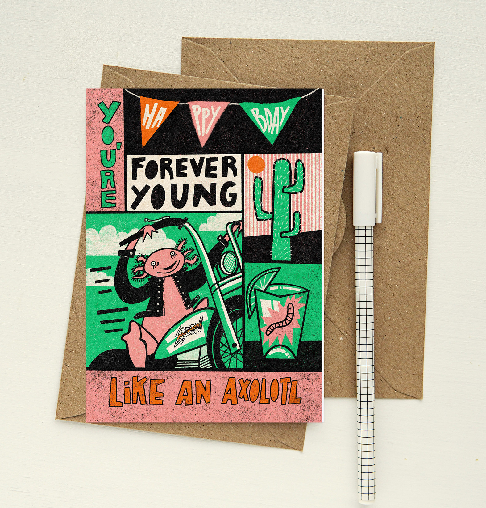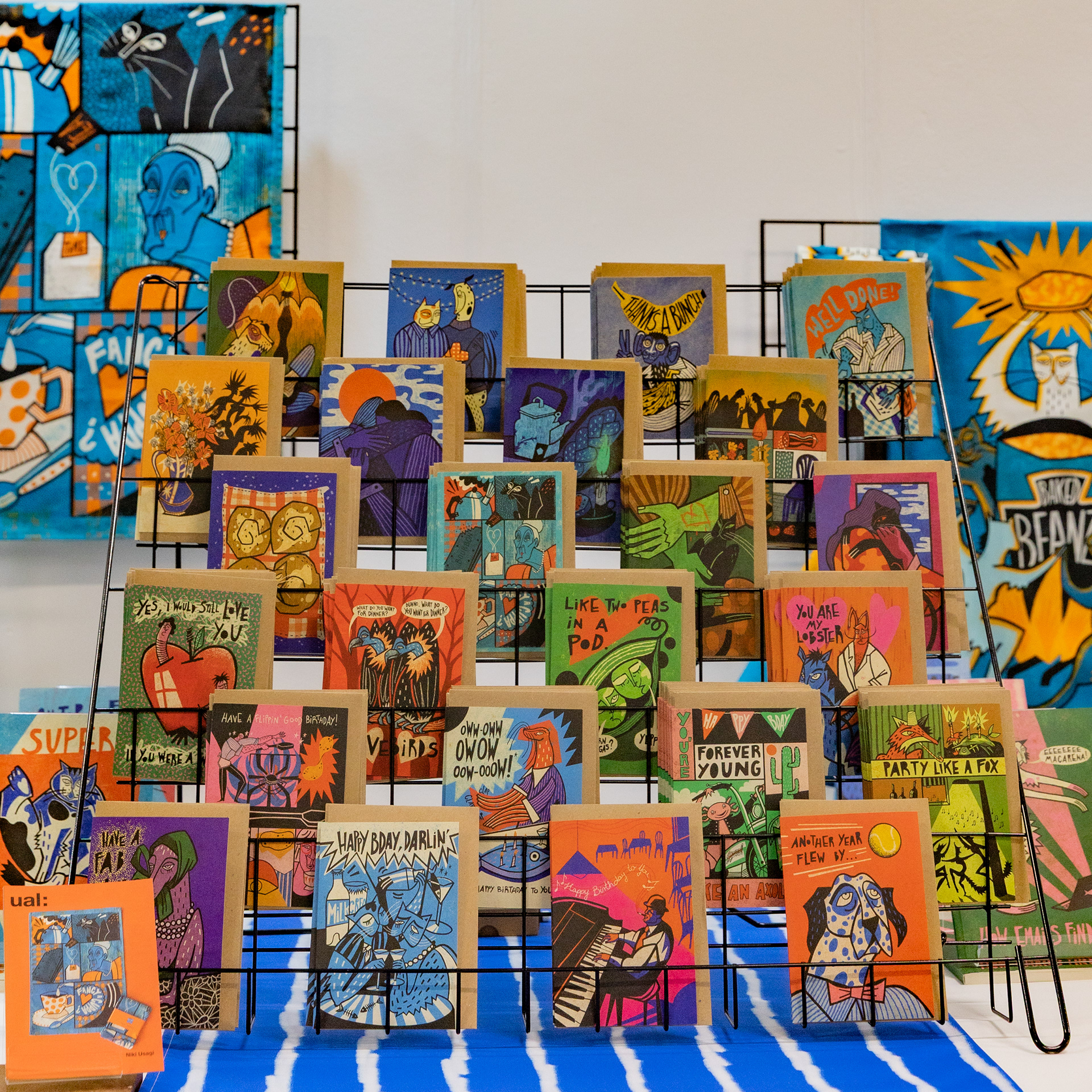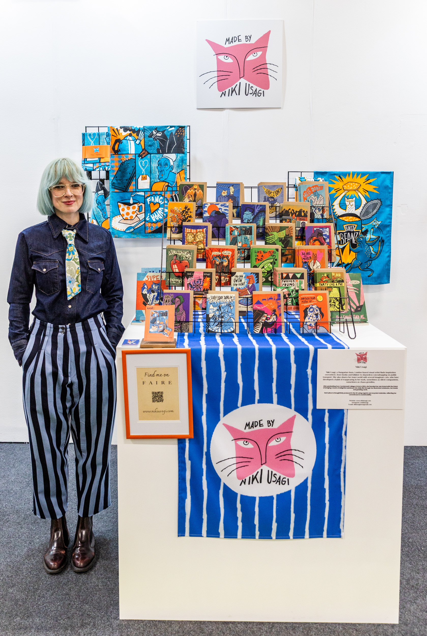 Since graduating from my MA at Camberwell in late 2024, my practice has grown from freelancing into an independent brand: Made By Niki Usagi. It all kicked off when I won a window display competition at not just a shop. Their team encouraged me to turn my illustrations into products, and I haven't looked back! My first tea towel collaboration was a success and they started to stock my prints and greeting cards. The sales and the feedback urged me to join the Top Drawer 2026 trade show as a UAL alumna. I walked away with immediate orders and have since built a loyal following of retailers through the Faire marketplace.