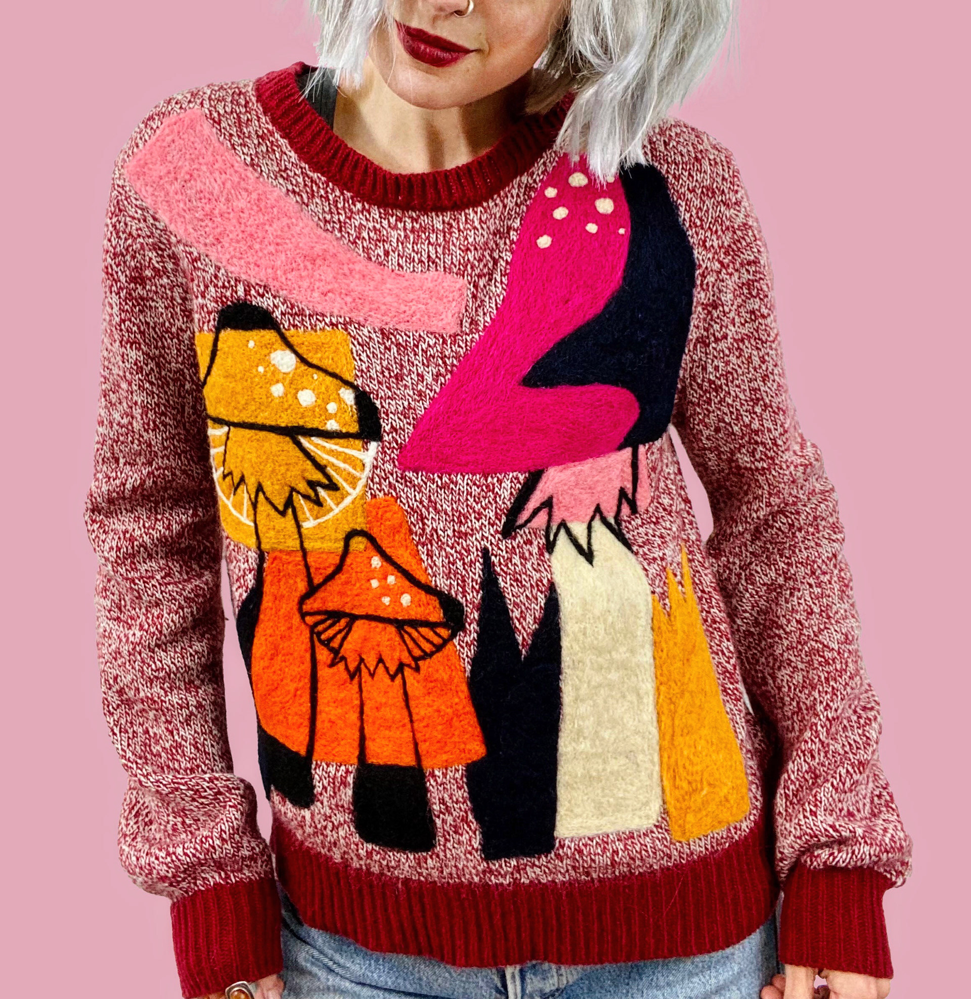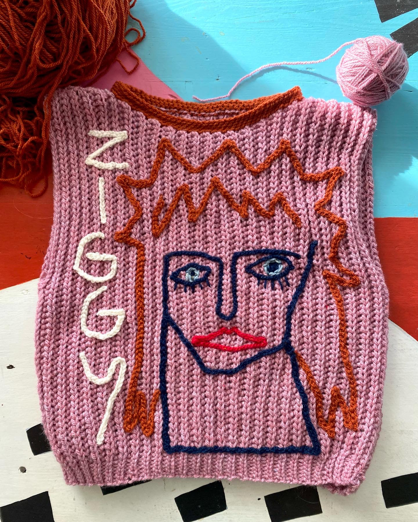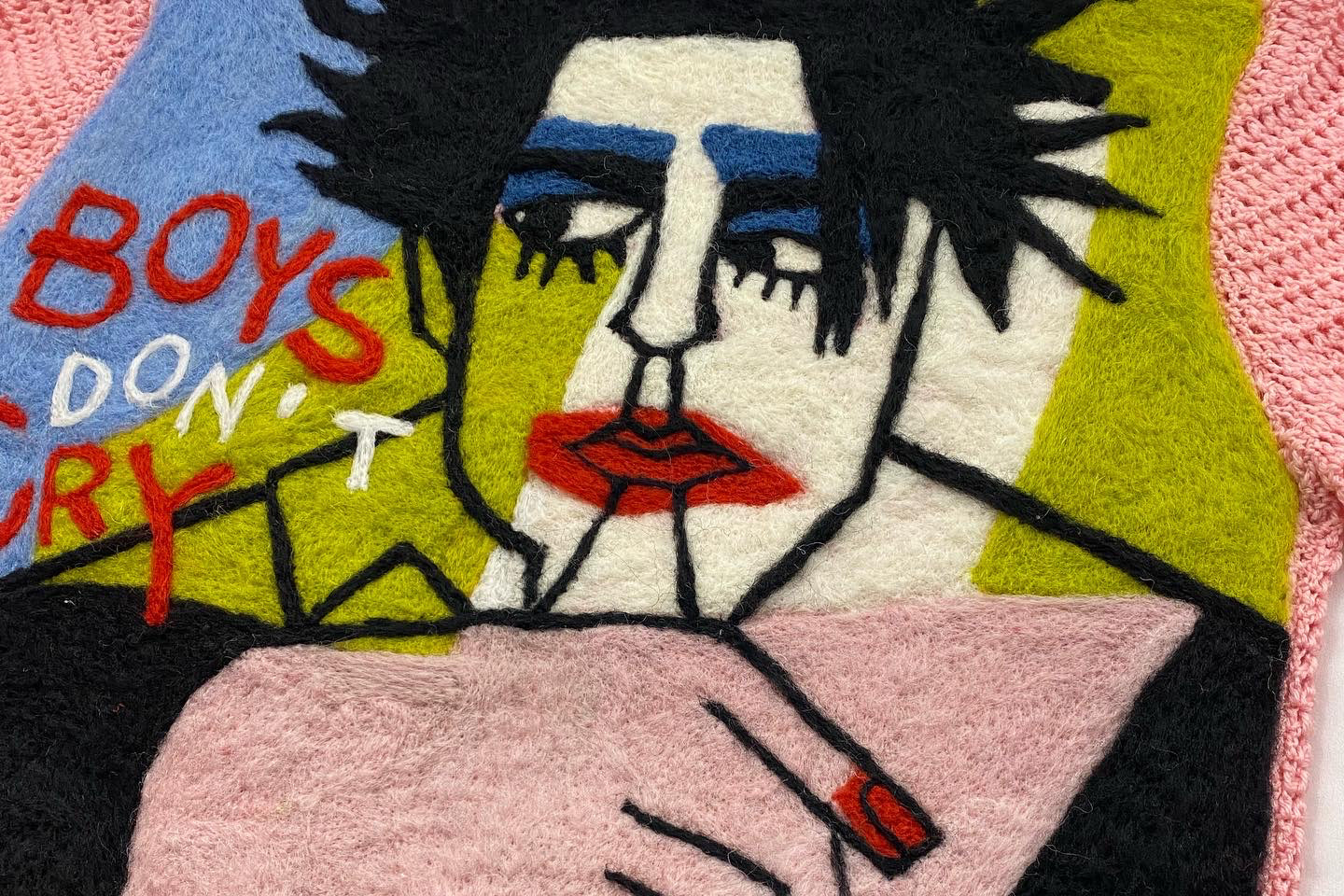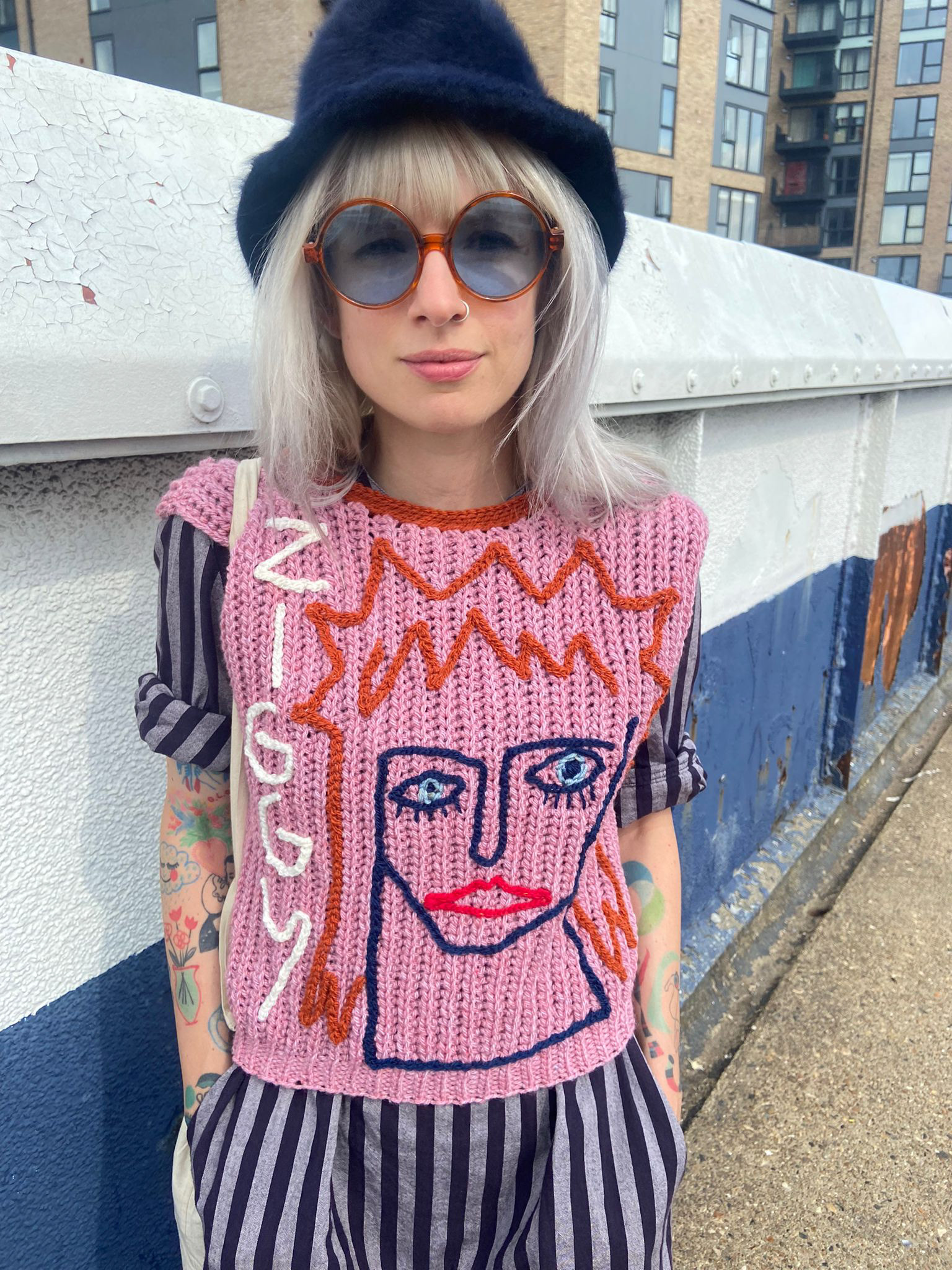 I'm passionate about slow fashion and sustainable design, incorporating recycled materials into my creative practice. I craft bespoke crochet pieces and upcycle thrifted garments—such as workwear, knitwear, and denim jackets—by painting or felting my illustrations onto them. I also experiment with the punch needle technique, creating unique rugs and tapestries that blend texture and storytelling.